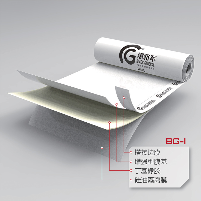 BG-I 丁基橡膠地鐵管廊專用自粘防水卷材是以增強(qiáng)型膜基為覆面材料,以丁基橡膠為粘結(jié)材料,并覆以隔離材料而組成的本體自粘防水卷材??刹捎米哉郴驖皲伔ㄊ┕?。