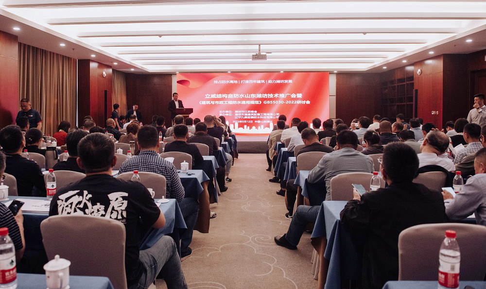 5月12日,立威結(jié)構(gòu)自防水山東濰坊技術(shù)推廣會(huì)暨《建筑與市政工程防水通用規(guī)范》GB55030-2022研討會(huì),在山東濰坊富華國際俱樂部成功召開。大會(huì)由濰坊市江蘇商會(huì)主辦,濰坊市天強(qiáng)建筑配套工程有限公司、遼寧九鼎宏泰防水科技有限公司共同承辦。防水行業(yè)權(quán)威專家、濰坊設(shè)計(jì)院、央國企合作伙伴、知名開發(fā)企業(yè)、防水同仁共計(jì)100余人齊聚一堂,深入交流。