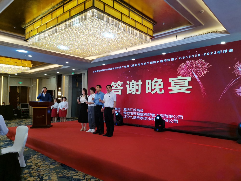 答謝晚宴,濰坊天強(qiáng)建筑配套工程有限公司董事長李娟致祝酒詞,立威結(jié)構(gòu)自防水技術(shù)山東濰坊推廣會(huì)在一片喜慶的氛圍中圓滿結(jié)束。
